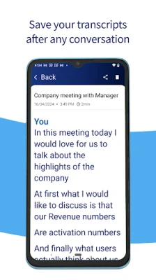 • Transcripts are saved in the cloud ☁️ Use this Ava mobile app along with Ava Web and Desktop App where all your transcriptions are available on any device.