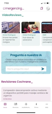 La app dispone de una IA con la que se pueden mantener conversaciones para obtener información de interés o hacer búsqueda bibliográfica sobre urgencias, emergencias y paciente crítico.
