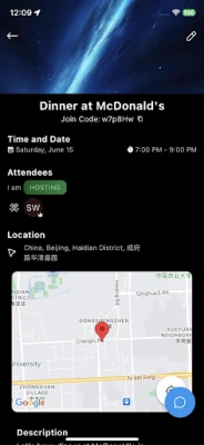 Want to invite friends? Use the built-in share feature to send event details via Facebook, Instagram, Snapchat, and more. Friends can join events quickly with just a 6-digit event code. Cross-device on iOS and Android.
