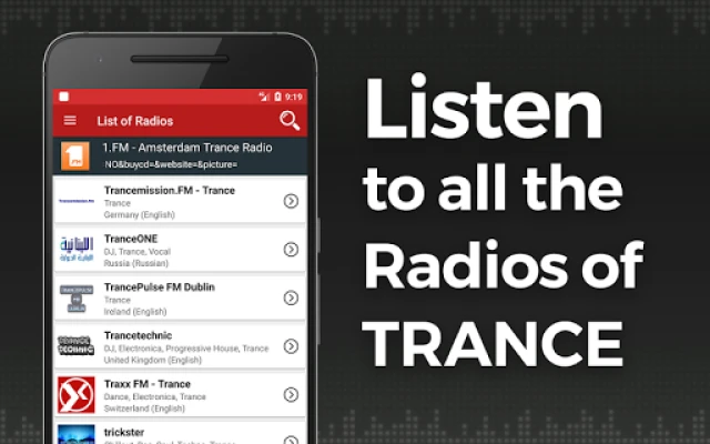 Looking for an app with all the radios of Trance Music? Don't waste your time!! You've found the Radio App you were looking for, listen online the best radio stations of Trance, easily and for Free